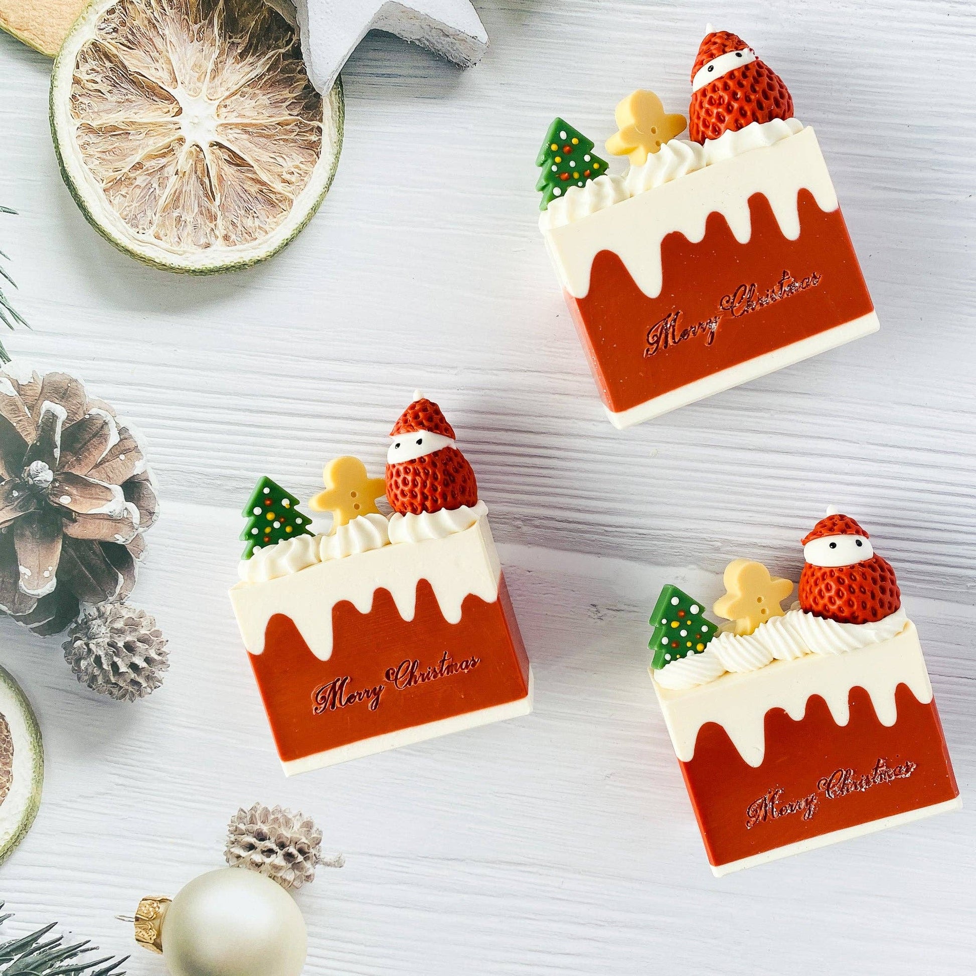 🎄 Immerse in 'Christmas Fantasia', a signature festive highlight from our Christmas Collection. This artisanal soap features a red bar with a white 'cream' cascade, mimicking a luscious strawberry cake. It's a festive delight topped with Santa, a Christmas tree, and a gingerbread man. The effervescent scent of Champagne & Strawberry uplifts each bath. A picture-perfect holiday gift! 🍓🥂🎅🎄🛀